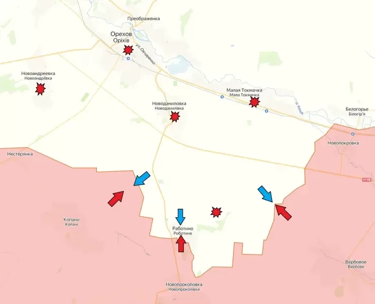 На Запорожском направлении активные бои продолжаются на линии Работино-Вербовое. Действия осложнены интенсивным артиллерийским огнем и минированием со стороны противника, а также активным использованием дронов. На данном направлении наблюдается замедление продвижения из-за сложности укрепления на новых позициях, где попросту негде закрепиться на новых рубежах.