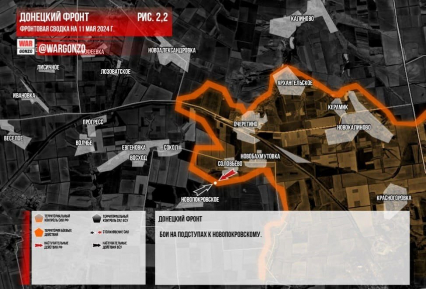 Новая карта боевых действий в зоне СВО на Украине по данным на 11.05.2024