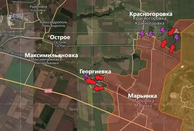 На Донецком направлении российские войска вышли на западную окраину Георгиевки, очищая последние дома.