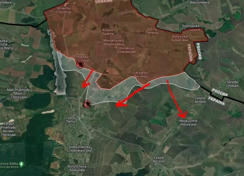 Российские подразделения начали бои за Липцы. Кроме того, ВС РФ давят в направлении Нескучное и Веселое.
