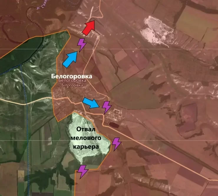 Позиции восточнее Белогоровки остаются под контролем ВС РФ, но из-за того, что враг удерживает важнейшую высоту (отвал мелового карьера), Армии России не удаётся эффективно использовать бронетехнику для штурма позиций противника.