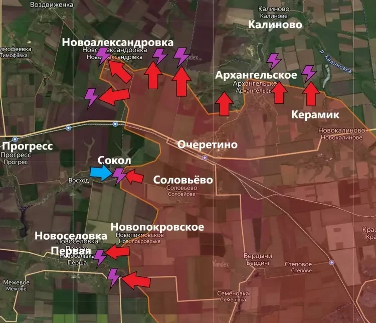 Вместе с этим продолжается наступление на запад и сохраняется давление российских войск на позиции украинских формирований в направлении Новосёловки Первой, пишет PulsePen.