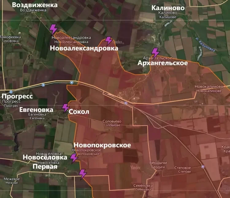 На Покровском направлении идут ожесточённые бои между Новоалександровкой и Воздвиженкой. Этот участок важен тем, что прорыв к трассе, которая находится чуть северо-западнее, несколько усложнит снабжение ВСУ на константиновском направлении.