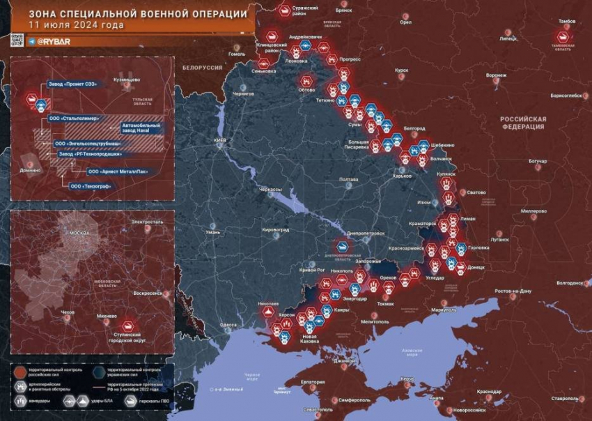 Карта боевых действий на Украине в зоне СВО по состоянию на 12.07.2024