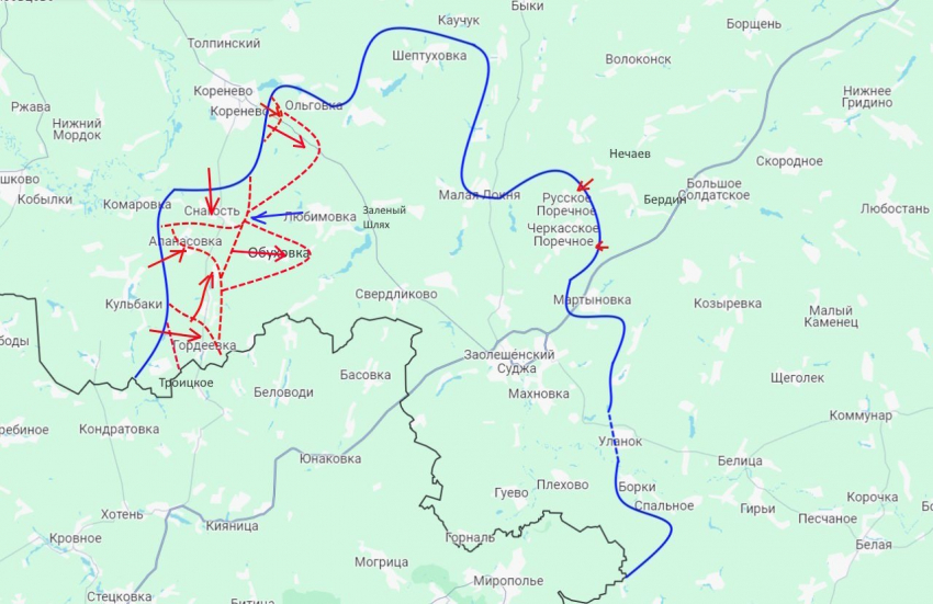 Кроме Обуховки, наши войска еще сумели продвинуться немного вдоль дороги от Кронево-Суджа. Таким образом ситуация для противника здесь хоть и пока контролируемая, но заметно ухудшилась.