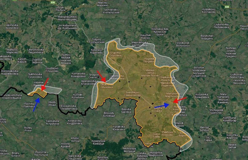 На Суджанском участке отмечаются боестолкновения в районе Черкасское Поречное и Погребки.