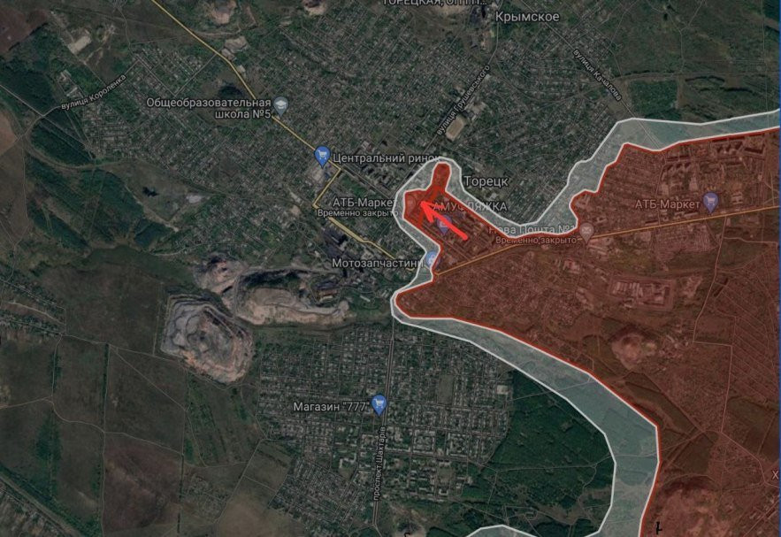 На Торецком направлении в Торецке ВС РФ имеют тактические успехи в центральной части города.