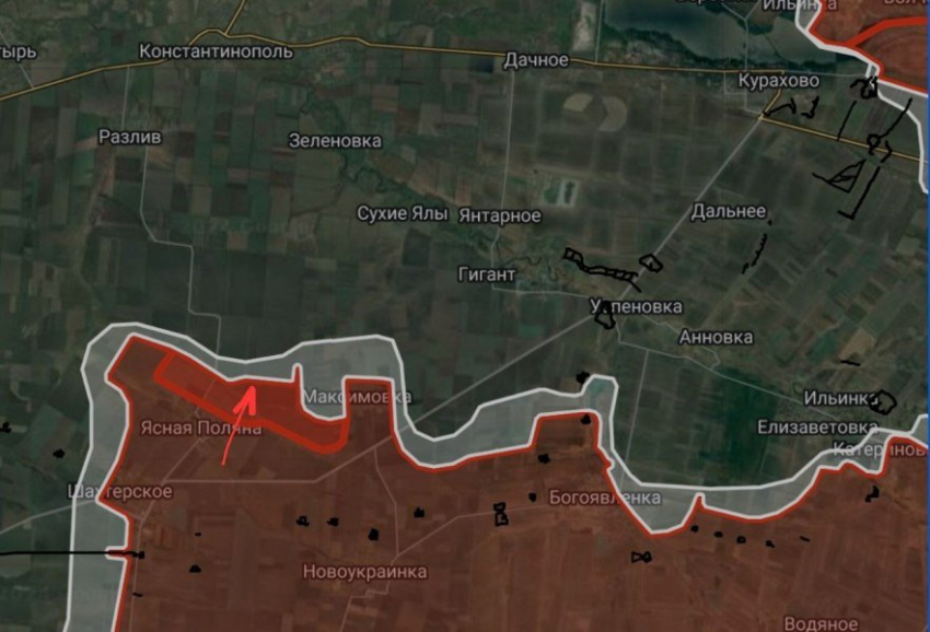 На Константинопольском направлении севернее Ясной Поляны и восточнее Максимовки российские войска продвинулись на участке шириной до 6.3 км на глубину до 2 км., давят в западном и северном направлениях.
