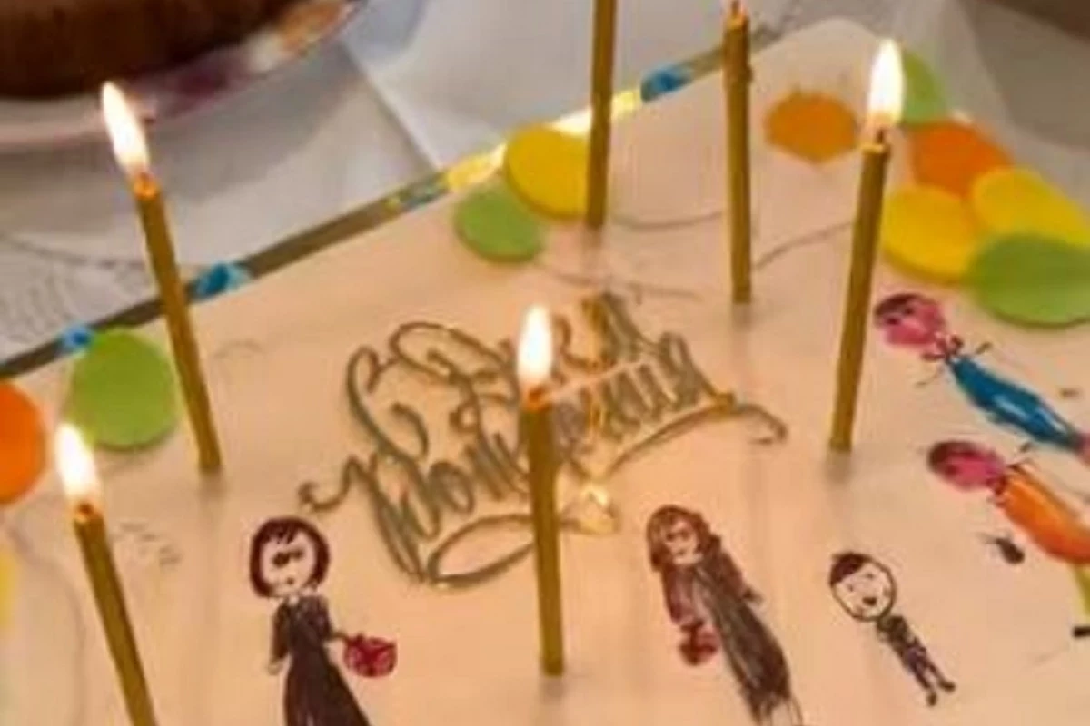 Декор десерта был выполнен в виде детского рисунка. Дочь и сыновья Сергея нарисовали их счастливую семью - отца, мать и самих себя. Безруков, увидев оригинал детского творчества и оформленный таким же образом торт, расчувствовался...