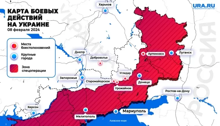 Обновлённая карта боевых действий на Украине от 08.02.2024: свежие новости СВО на 12:00 мск сегодня