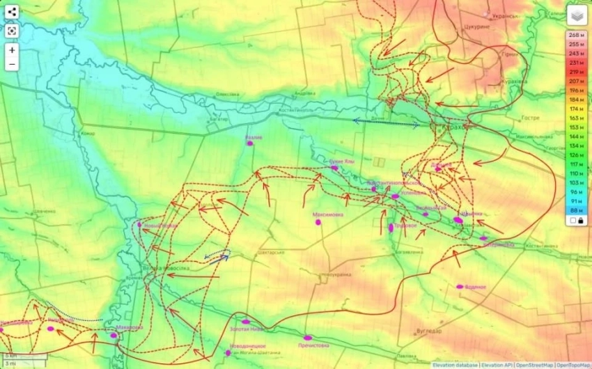 А еще вчера наши части (уже группировки «Восток») зашли в села Константинопольское и Сухие Ялы. То есть удавка вокруг группировки ВСУ на реке Сухие Ялы затянулась еще сильнее.