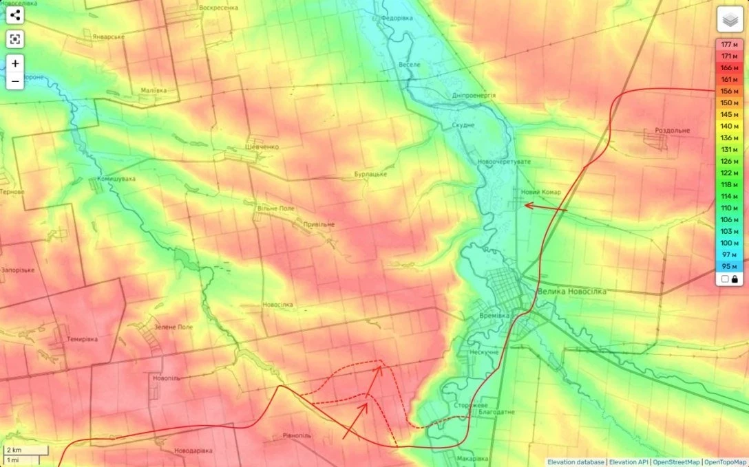 Атака по холмам дала нам продвинулись более чем на 2 км и тем самым заметно приблизились к трассе Гуляйполе-Большая Новосёлка.