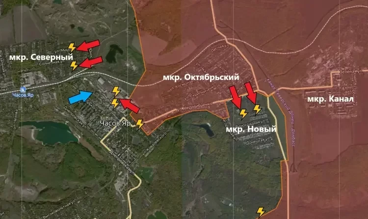 На Константиновском направлении продолжаются бои в Часов Яре, а именно в микрорайоне Северный. Продвинуться дальше на запад нашим бойцам пока что не удаётся.