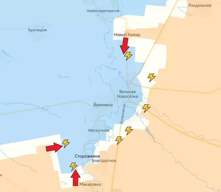 Одна из важнейших задач для формирования мешка и создания максимальных проблем для ВСУ на этом участке фронта - физическое перерезание трассы, ведущей в Великую Новосёлку с запада. Враг всеми силами старается этого не допустить, поэтому направляет всё новые резервы на удержание позиций севернее Ровнополя и Новодаровки.