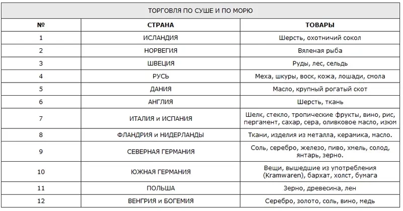 Морская торговля привела к возникновению портовых городов, в которых ремесленники и купцы, которые торгуют, возят свои товары и богатеют. Риски торговли были очень высокие, потому что в Балтийском море полно пиратов, а на торговых путях стоят замки феодалов, которые берут плату со всех проезжающих через их земли и нередко их грабят. Но один проведенный сквозь все препятствия корабль с товарами приносит гигантскую прибыль, и удачливый купец становится богатейшим человеком империи.