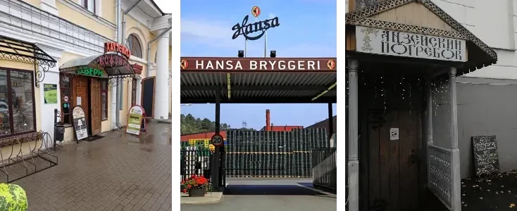 В большинстве случаев слово «Hanse» имеет мало или вообще не имеет ничего общего с самой Hanse, но места, в которых расположены эти предприятия, имеют ганзейское прошлое. Фото слева: ресторан Hansa Grill в Таллине. Фото в центре: пивоварня Hansabryggeri в норвежском Бергене. Фото справа: харчевня «Ганзейский погребок» в Великом Новгороде.