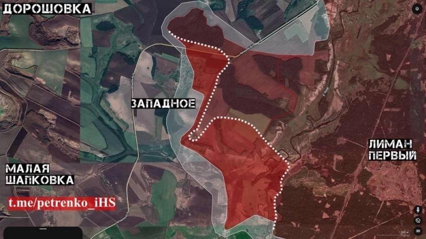 ВС РФ продвинулись в Западном и южнее вдоль р. Оскол на участке шириной до 6.12 км на глубину до 1.7 км.