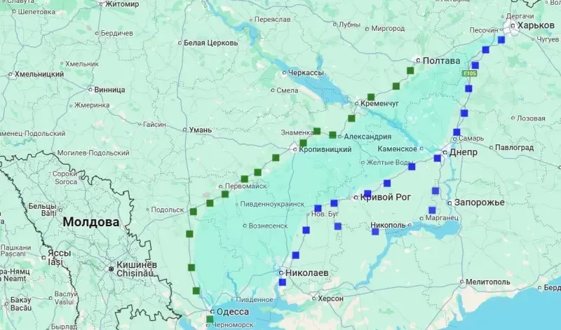Вторая линия – та самая, на которой собираются вставать уже британские войска – Полтава-Кременчуг-Кропивницкий (Кировоград)-Одесса.