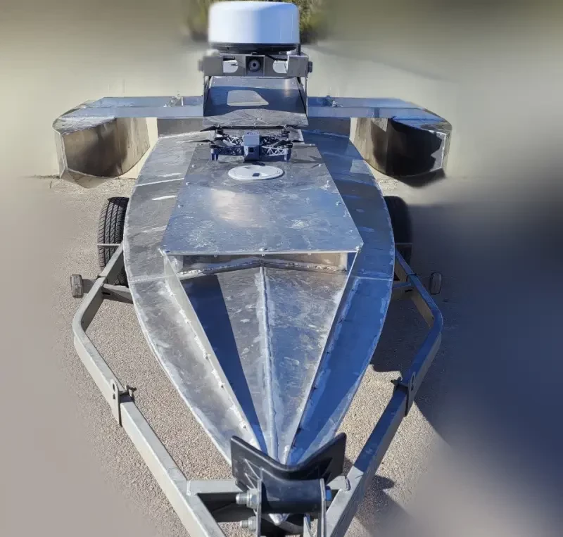 Катер построен по схеме тримарана. Он имеет центральный корпус традиционных лодочных обводов, к которому с помощью рам крепятся два боковых аутригера-поплавка. Такую схему выбрали для повышения остойчивости и уменьшения вероятности переворачивания. Предполагается, что такой подход упрощает дистанционное управление катером.