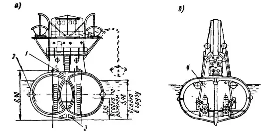 1 - воздушный канал, 2 - нефтяной танк, 3 - нефтяной канал, 4 - двигатель