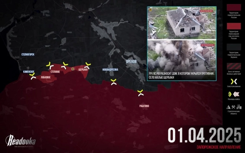 На Запорожском участке ВС РФ штурмуют Лобковое с юга и со стороны Степового. К западу от Лобкового наши взяли один из ключевых опорников врага, готовя наступление на Каменское. По всей линии соприкосновения вплоть до Щербаков ВСУ предпринимают безуспешные контратаки. ВС РФ начинают теснить врага от Нестерянки в направлении на Новоандреевку. По Орехову и ближайшим сёлам постоянно работают российские авиация и артиллерия. В Новогоровке противник атаковал подстанцию, несколько сёл остались без света.