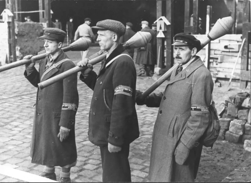 Бойцы фольксштурма с фауспатронами на позиции