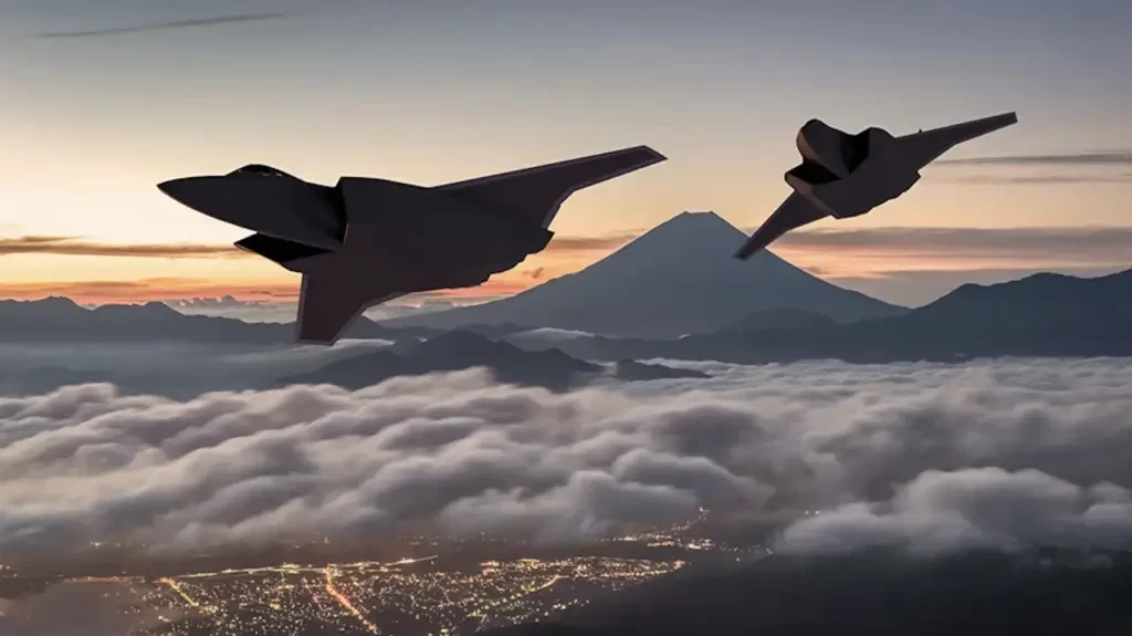 Официальная художественная концепция потенциальной конфигурации Tempest/GCAP с горой Фудзи на заднем плане