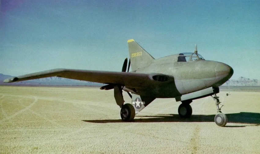 Миниатюрный Northrop X-4. Разработанный для изучения поведения околозвукового воздушного потока, он обнаружил, что конструкция без хвоста не подходит для сверхзвуковых или высоких околозвуковых скоростей. X-4 обеспечивал хороший обзор из кабины и был одним из первых самолетов серии X, оснащенных катапультируемым креслом.