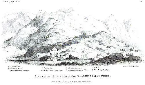Сразу стоит сказать, что формально все основания надеяться на быструю победу у генерал-губернатора были. Армия гуркхов (так англичане уже стали называть всех непальских горцев, так что можно и мне начинать), которой командовал Амар Сингх Тапа, имела численность от 5 до 8 тысяч человек.