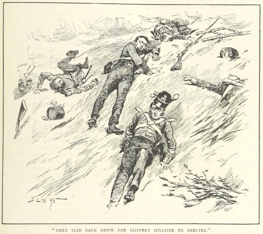 Британские штурмовики отступают с крутого холма форта Налапани