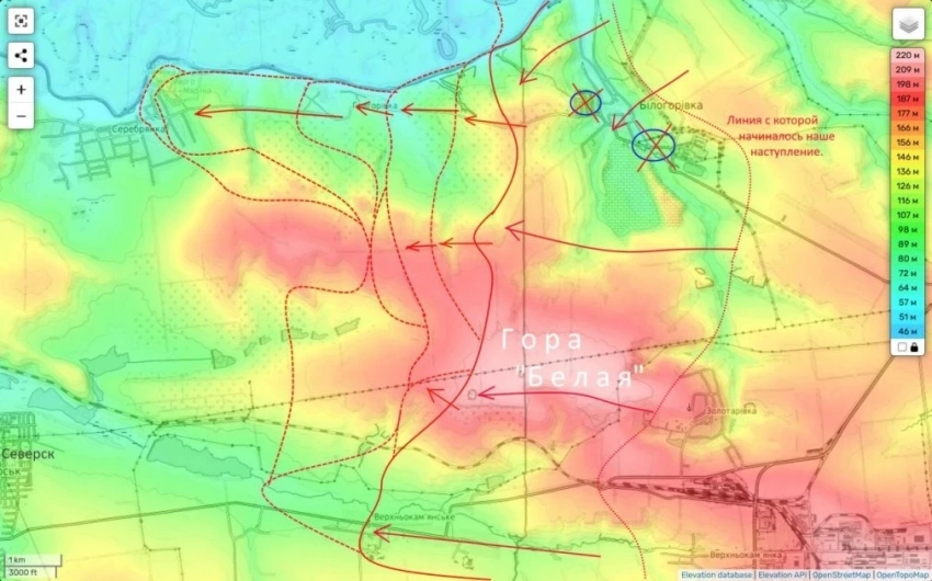 На Северском направлении российские части продолжают продавливать позиции противника от населённого пункта Белогоровка по направлению на Северск.