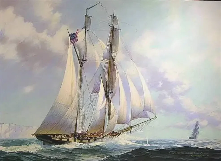 К тому времени клипер уже успел стать быстроходным торговым парусником, доставлявшим скоропортящиеся товары (в основном чай). Но родословная у этих кораблей была гораздо интереснее! Первые корабли, называемые «балтиморскими клиперами», появились в конце XVIII века. Строили их, как и следует из названия, на среднеатлантическом побережье Соединённых Штатов, главным образом в Балтиморе, но постепенно они стали популярны и в Великобритании. Парусное вооружение этих двухмачтовых кораблей чаще всего было — шхуна или бригантина. Но главная фишка заключалась не в нём, а в обводах корпуса: очень острых, с v-образной подводной частью, сильно наклонёнными штевнями. Мачты у балтиморских клиперов были немного наклонены назад.