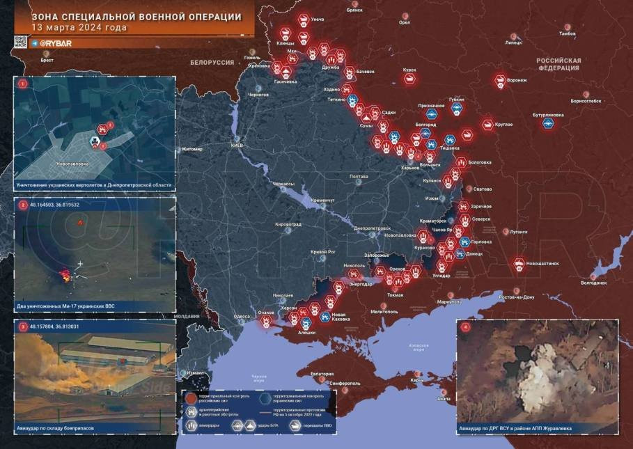 Последние новости СВО от 14 марта 2024. Карта боевых действий на Украине на сегодня, военная сводка