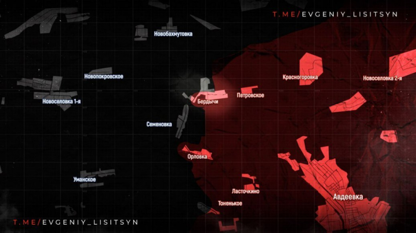На Авдеевском направлении идут бои за Бердычи, дачный посёлок «Рассвет» и Тоненькое. Севернее Орловки российские войска закрепились вдоль лесополосы на участке шириной до 750 м.