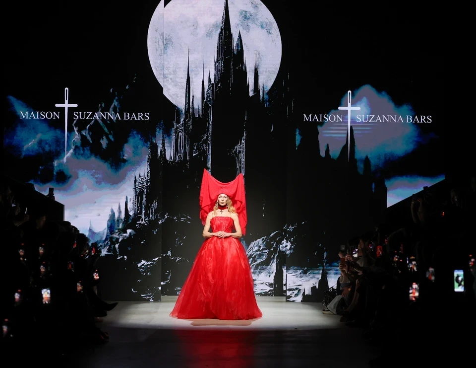 Московская неделя моды продолжается: Дина Саева в алом платье на показе Solangel, наряды с картинами Микеланджело от Sergey Sysoev и готическое шоу от Сузанны Барс