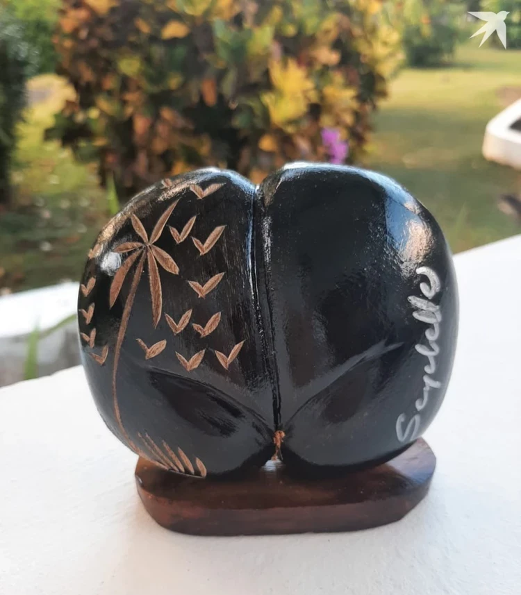 Сотрудники отеля сделали ей подарок на день рождения - сувенир из ореха сейшельской пальмы. Фото: личный архив Елены Кондулайнен.