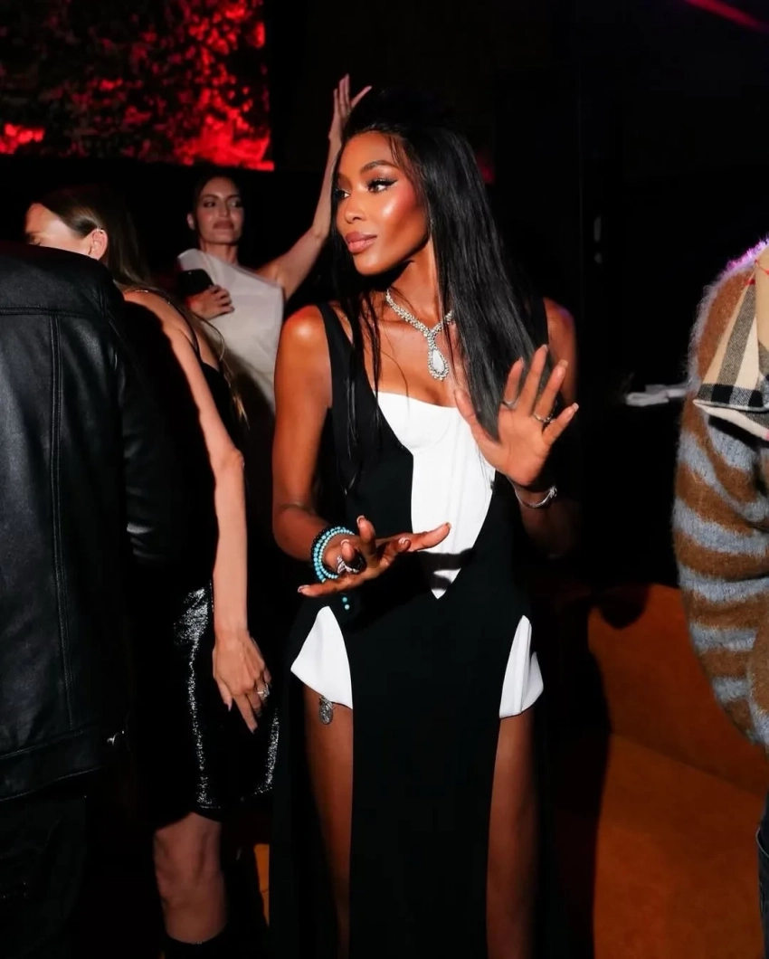 Судя по фото, у Кэмпбелл было две вечеринки. На одной она появилась бирюзовом платье Dolce & Gabbana, среди гостей были София Вергара, Эдриан Броуди и сын Арнольда Шварценеггера — звезда "Белого лотоса" Патрик Шварценеггер. Рядом с именинницей также находился мультимиллионер из Саудовской Аравии Мохаммед Аль Турки, с которым ей приписывают отношения. Торт для Наоми украсила её культовая фотография для Interview Magazine 1991 года.