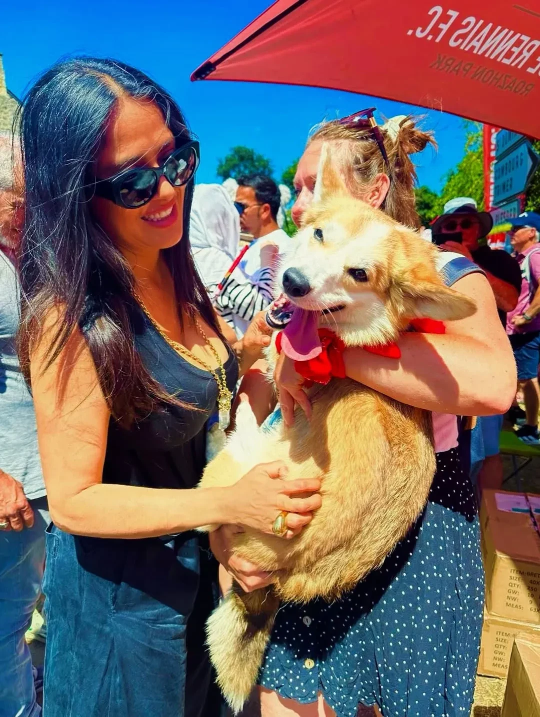 Звёздная семья посетила часть гонки, проходившей в деревне Треверьен в регионе Бретань, откуда родом отец Франсуа-Анри Пино, миллиардер Франсуа Пино. "В Треверьене с семьёй наслаждаемся традиционными блинчиками на "Тур де Франс", — подписала фотографии Сальма, на которых она позирует вместе с родными и зрителями.