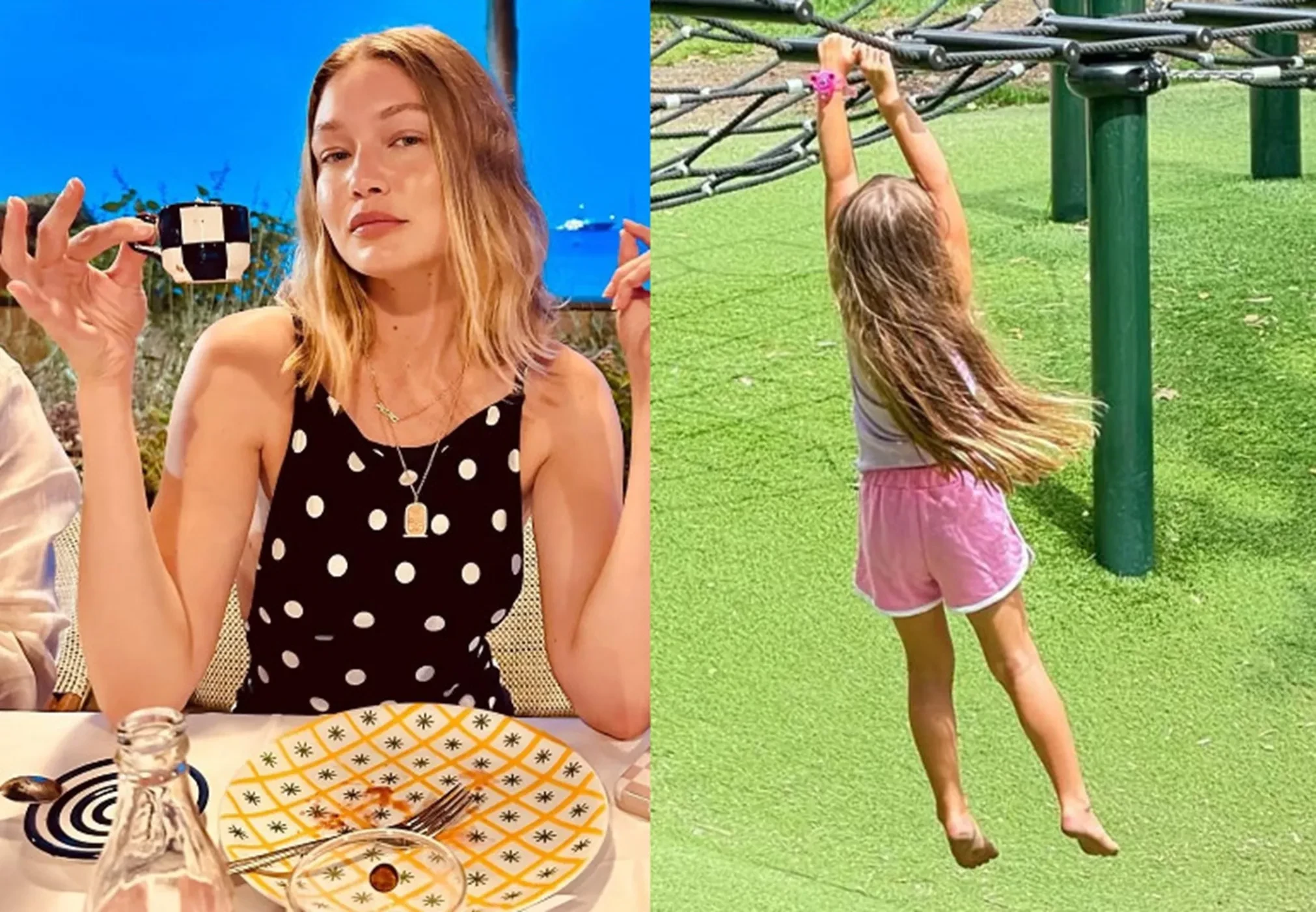 Джиджи Хадид показала кадры летнего отдыха с дочерью. 30-летняя супермодель свозила четырёхлетнюю Хай на море, где она лазила по верёвочному парку и могла понаблюдать за морскими обитателями.