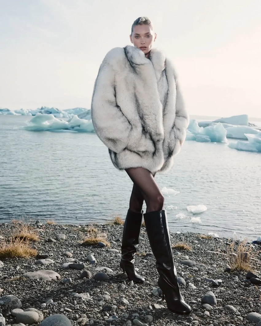36-летняя шведская топ-модель примерила несколько образов Ekonika. Эльза позировала на фоне местной природы в короткой шубе и сапогах (в стиле slavic bimbo), кожаной куртке и плаще, а также в лоферах с мехом и куртке молочного цвета.
