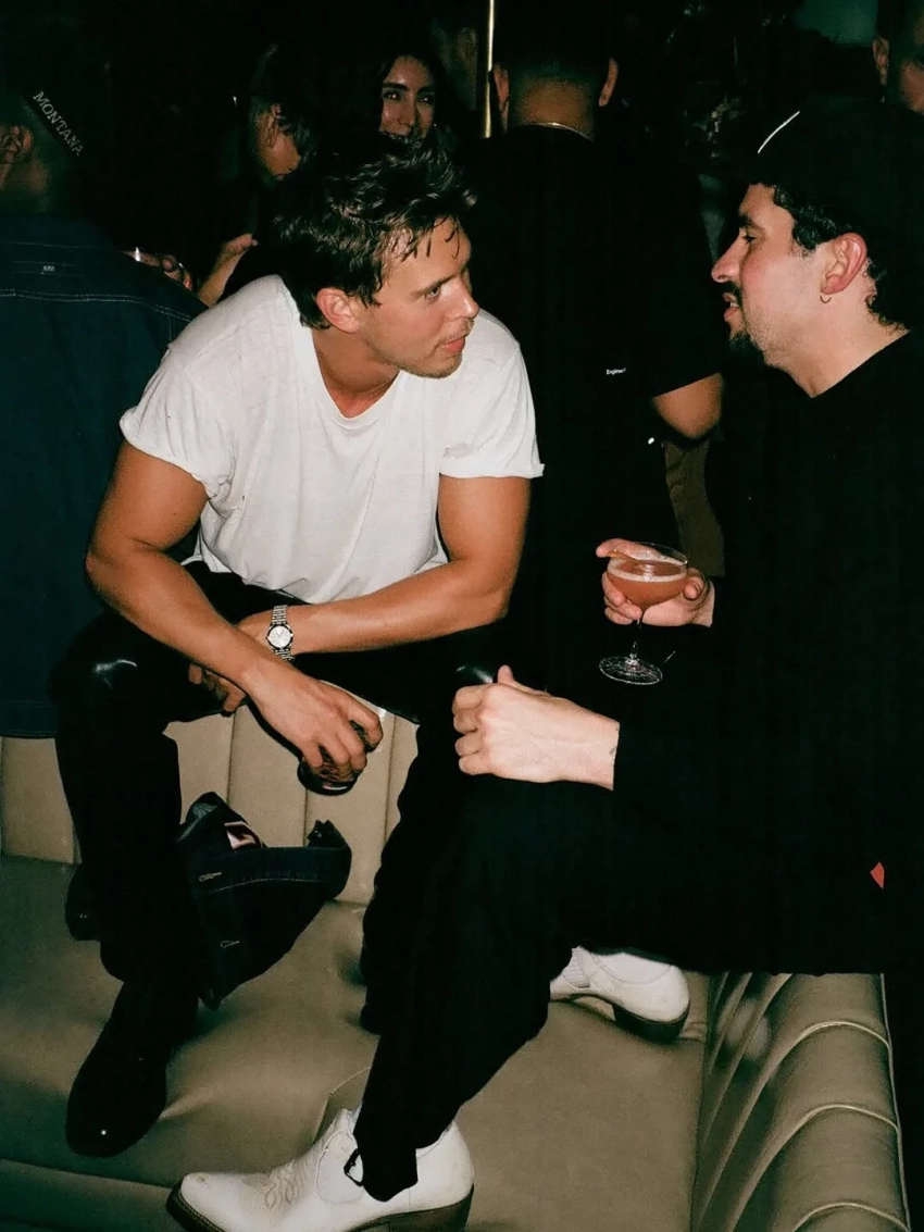 Юрий Колокольников, Никита Кукушкин*, Зои Кравиц и Остин Батлер на афтепати премьеры фильма "Пойман с поличным" Даррена Аронофски