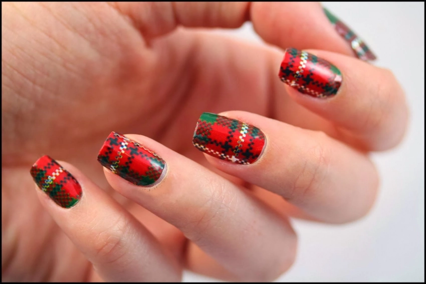 Что может быть уютнее, чем клетчатый красный плед? Перенесите эту атмосферу на ногти: создайте классический клетчатый дизайн с металлическими акцентами на лунке. Для контраста добавьте зелёный «плед» на большом пальце – дерзко и оригинально!
