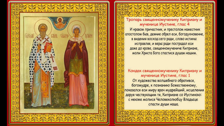 День памяти священномученика Киприана и святой мученицы Иустины отмечается в России 15 октября