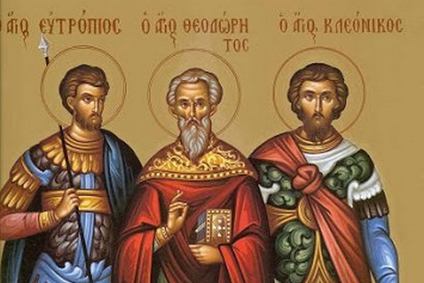 Евтропий и Клеоник, будучи братьями, открыто исповедовали свою веру в Христа. Вместе с ними был Василиск, племянник замученного великомученика Феодора Триона. После смерти Феодора, трое друзей были арестованы и брошены в темницу за свою веру. Там они неустанно проповедовали Христову веру и сумели обратить к ней многих.